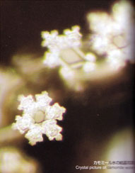 Fotografia naľavo bola spravená tri dni po zemetrasení v Kobe, Japonsko. Bol to deformovaný kryštál vody z vodovodného kohútika v Kobe. Zdá sa, že voda zdeformovaním vyjadruje pocity paniky, žiaľu a úzkosti, ktoré zažívali miestni ľudia počas zemetrasenia. Každý, kto videl tú fotografiu bol šokovaný pocitmi, ktoré vyjadrovala voda. Ľudia z iných častí Zeme sa však zaujímali o ľudí v Kobe a pomáhali im. Tri mesiace po zemetrasení spravil tím výskumníkov ďalšiu fotografiu tej istej fľaštičky vody (napravo), ktorá teraz vyjadrovala tú istú krásu ako modlitby a záujem o ľudí na Kobe v Japonsku.
