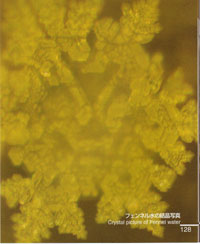 Dr. Li: Dr. Emoto naozaj spravil množstvo experimentov, kde skupina ľudí posielala spoločne spravodlivé myšlienky vode. 2. februára 1997, 500 ľudí po celom Japonsku, na výzvu Dr. Emota, vysielalo láskavé myšlienky fľaštičke s vodou z kohútika v Tokiu na pracovnom stole Dr. Emota. Každý bol požiadaný, aby myslel na rovnakú myšlienku, "Voda je teraz očistená. Ďakujem." Tento láskyplný odkaz bol vyslaný súčasne 500 ľuďmi z celého Japonska. Fotografia bola spravené hneď potom. Vôbec žiadne umelé spracovanie tejto fotografii nebolo spravené. Hoci výskumný tím očakával tento výsledok, všetci členovia tímu boli pohnutí k slzám, keď videli túto fotografiu.